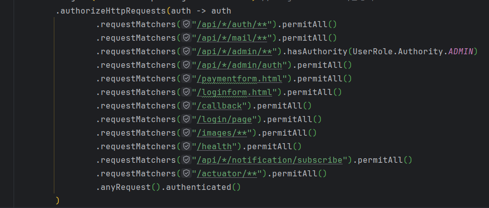 jwt 토큰과 security에는 허용된 엔드포인트만 적용되었다